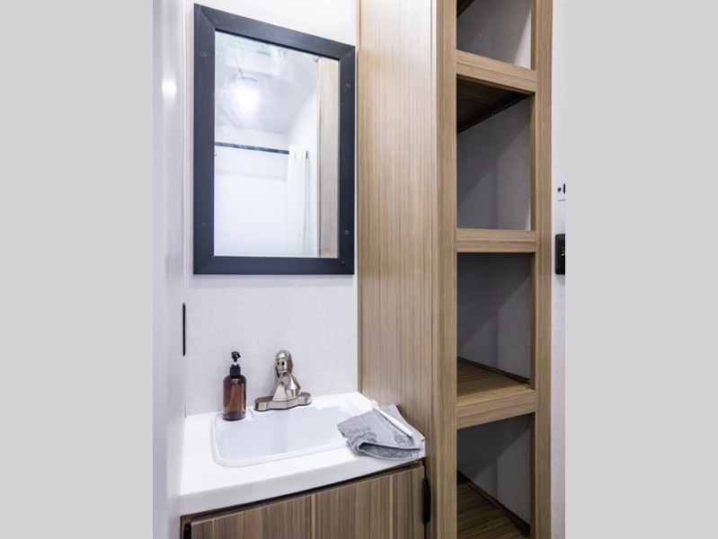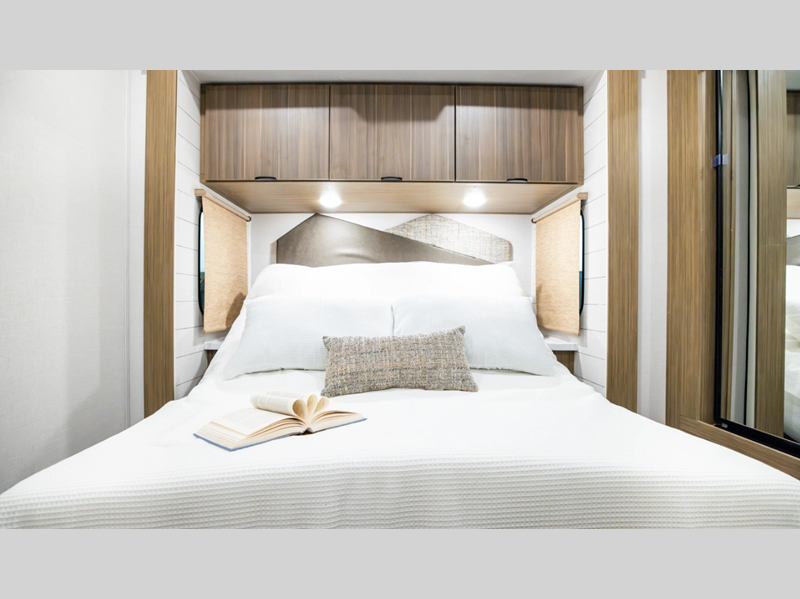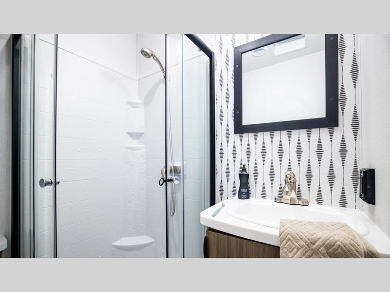 Sleeps 3 Slides 2 Length 37 ft 9 in Ext Width 8 ft Ext Height 12 ft 8 in Int Height 7 ft Hitch Weight 1335 lbs Dry Weight 9234 lbs Cargo Capacity 2301 lbs Fresh Water Capacity 40 gals Grey Water Capacity 40 gals Black Water Capacity 40 gals Available Beds King with Versa Tilt Cooktop Burners 3 Number of Awnings 1 Water Heater Type Tankless AC BTU 15000 btu Awning Info 21' with 4K Blade Lighting Axle Count 2 Shower Type Walk-In Shower Similar Floorplans